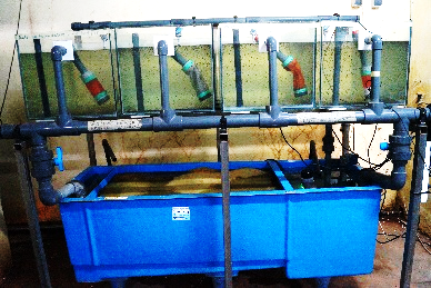 · un circuit fermé d’aquarium de 36 aquariums de 50 litres pour les expérimentations