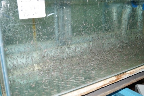 · deux circuits fermés de 2 bacs en fibre de verre de de 2 m3 chacun, pour l’élevage des fingerlings